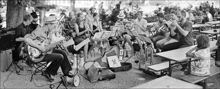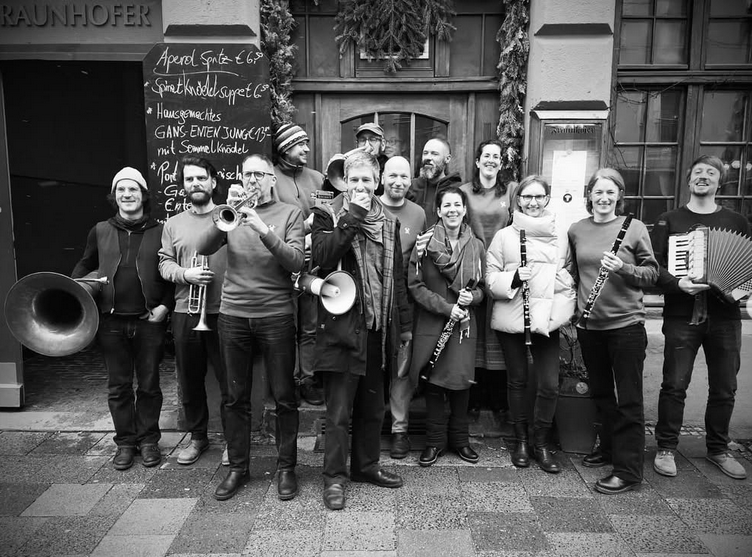 „Eine Lebensfreude kann man ja doch nur mit Blasinstrumenten ausdrücken“, schrieb der Münchner Schriftsteller Heiner Link in seinem Roman „Hungerleider“. Der Kapelle G.Rag & die Landlergschwister ist dieser Zusammenhang wohlbekannt. Mit vier Klarinetten, drei Trompeten, zwei Basstrompeten und Tuba sind die Blasinstrumente gut vertreten in der Band, neben Schlagzeug, Gitarre, Banjo, Akkordeon und Gesang.